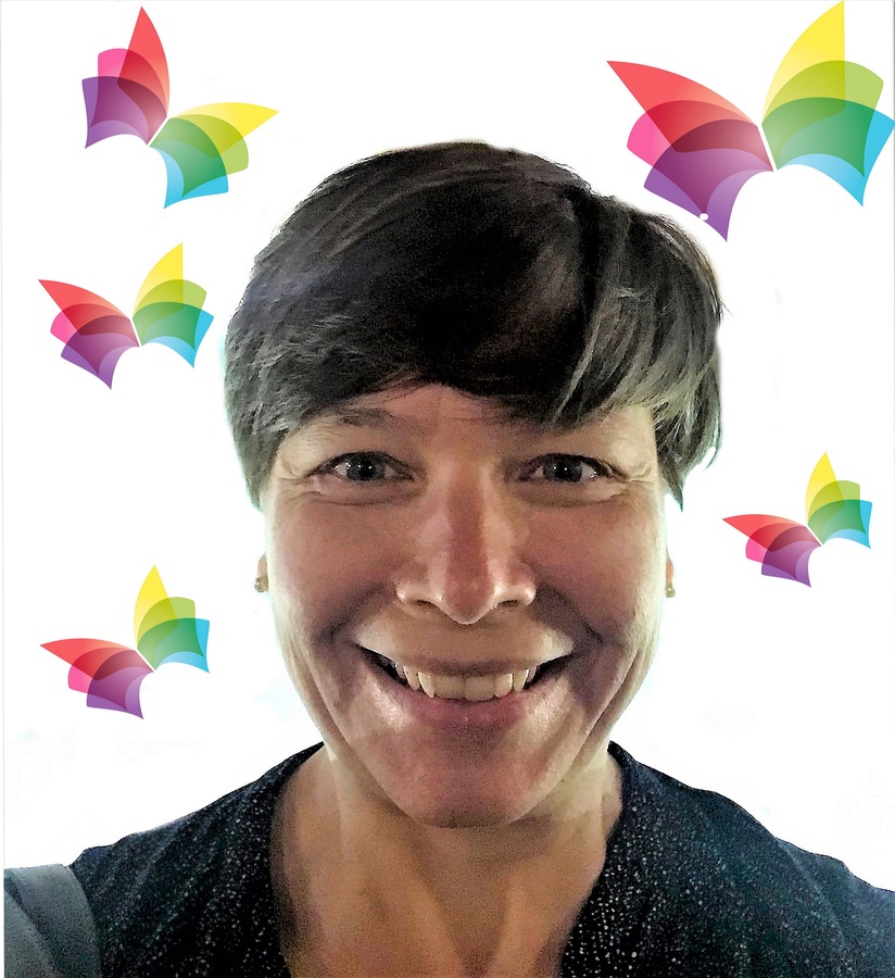 Bitte sagen Sie uns, in welcher Farbe aus dem Schmetterling der Ortszusatz stehen soll (lila, rosa, rot, grün, türkis).
