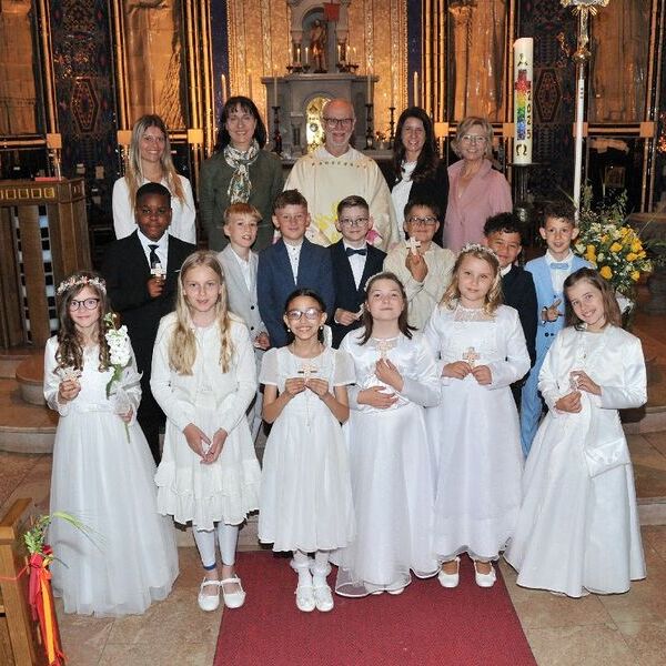 Erstkommunion 18.5.2025 10:00 Unter den Klängen der Blasmusik zogen 13 ErstkommunikantInnen in die Pfarrkirche. Nach der Feier wurden von der Männerrunde Getränke, sowie Kaffee und Kuchen angeboten.