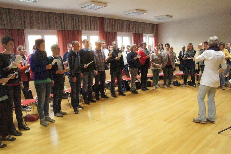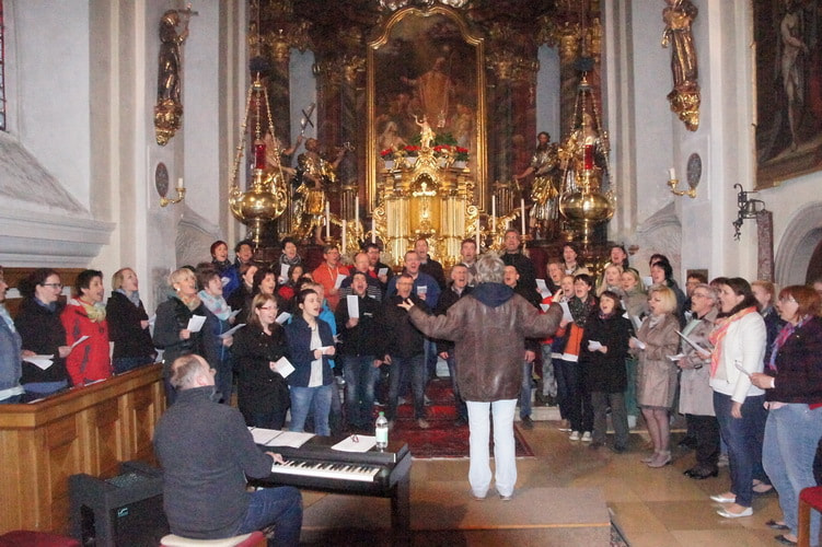 Nicht nur Mitglieder vom Chor4you oder Peuerbacher waren dabei; der Workshop begeisterte zahlreiche SängerInnen aus den verschiedensten Pfarren der Umgebung. So waren wir insgesamt ein Chor bestehend aus 56 TeilnehmerInnen.