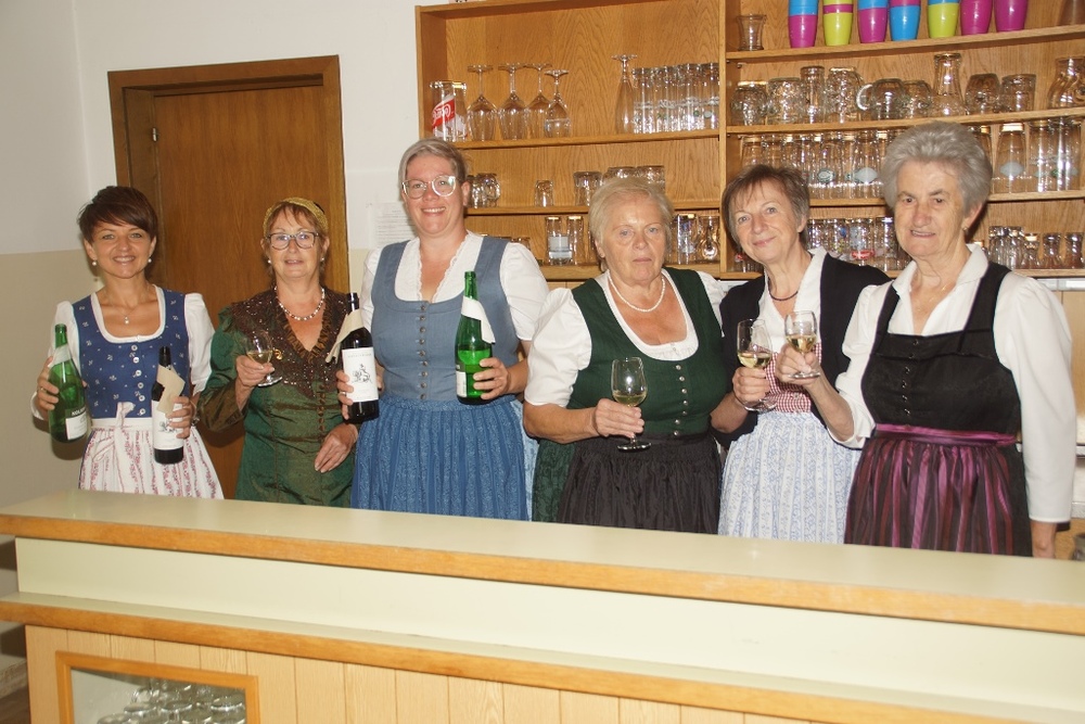 Mit Goldhaubenobfrau-Stellv. Elfi Thurner und Birgit Lindinger; Pfarrer Mag. Josef Etzlstorfer sowie Goldhaubenobfrau Sieglinde Eisenhuber