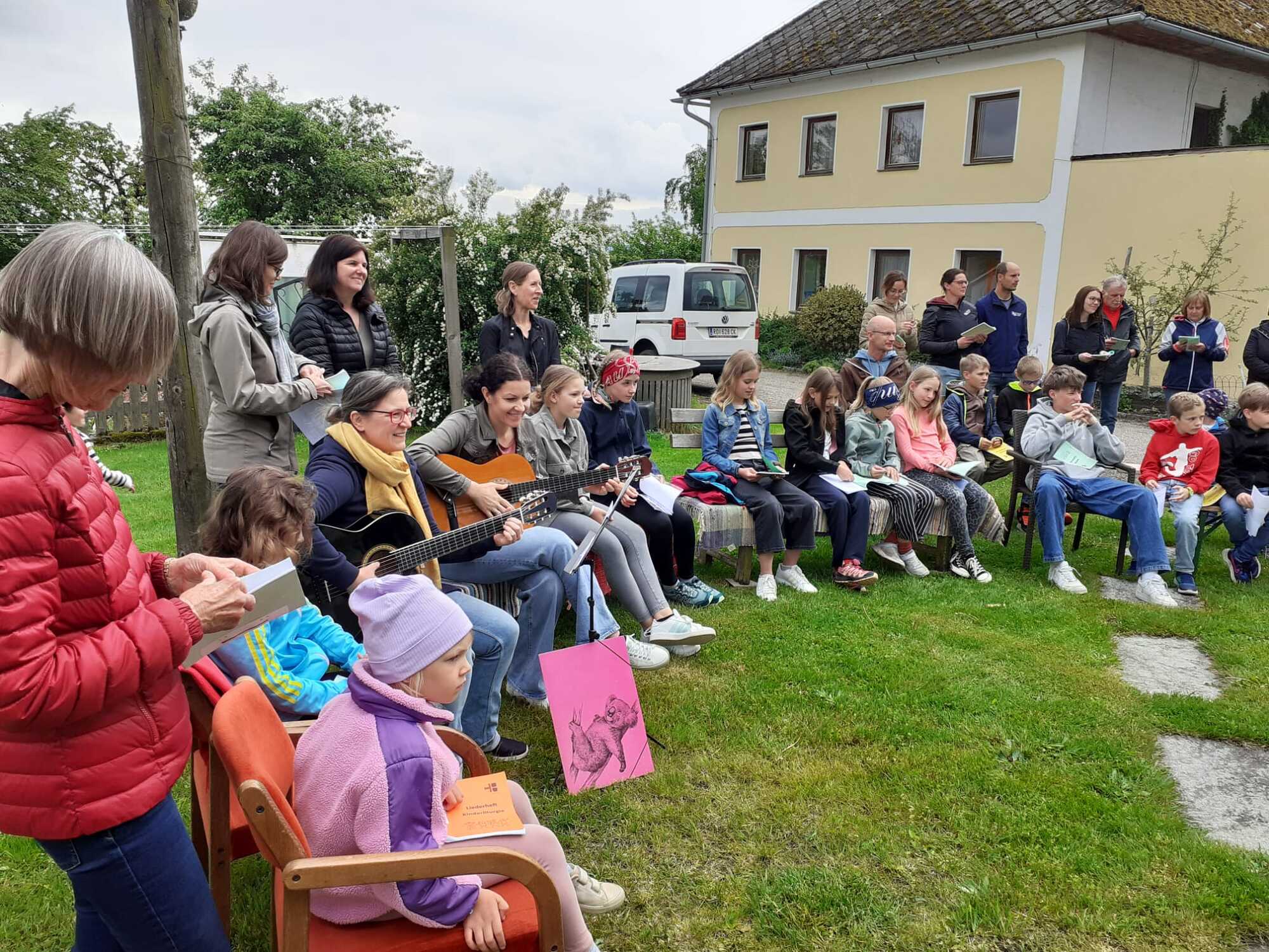 Am 4. 5. 2025 feierten wir die Maiandacht bei der Pusch-Kapelle zum Thema: Maria breitet ihren Mantel aus und beschützt uns.