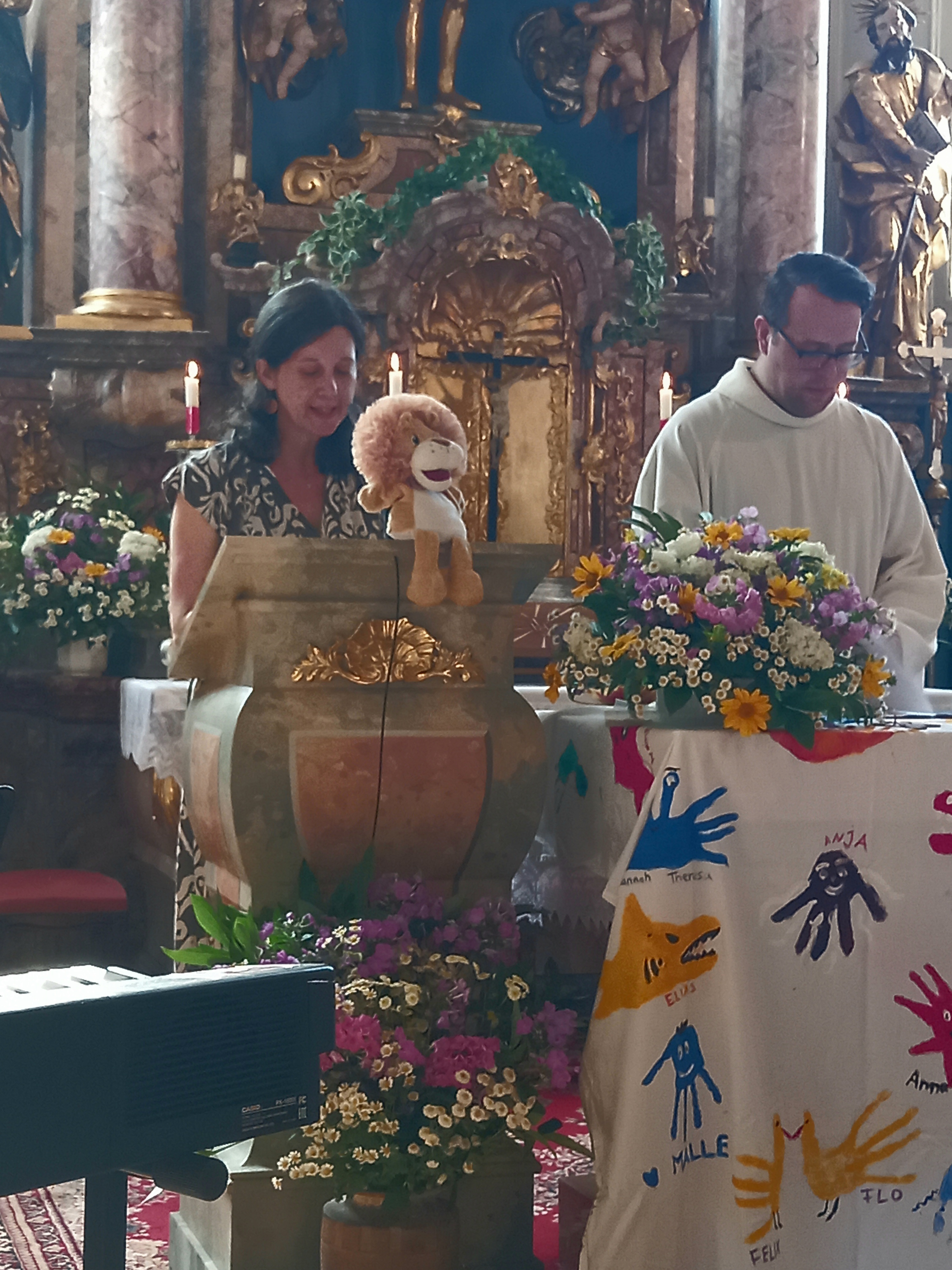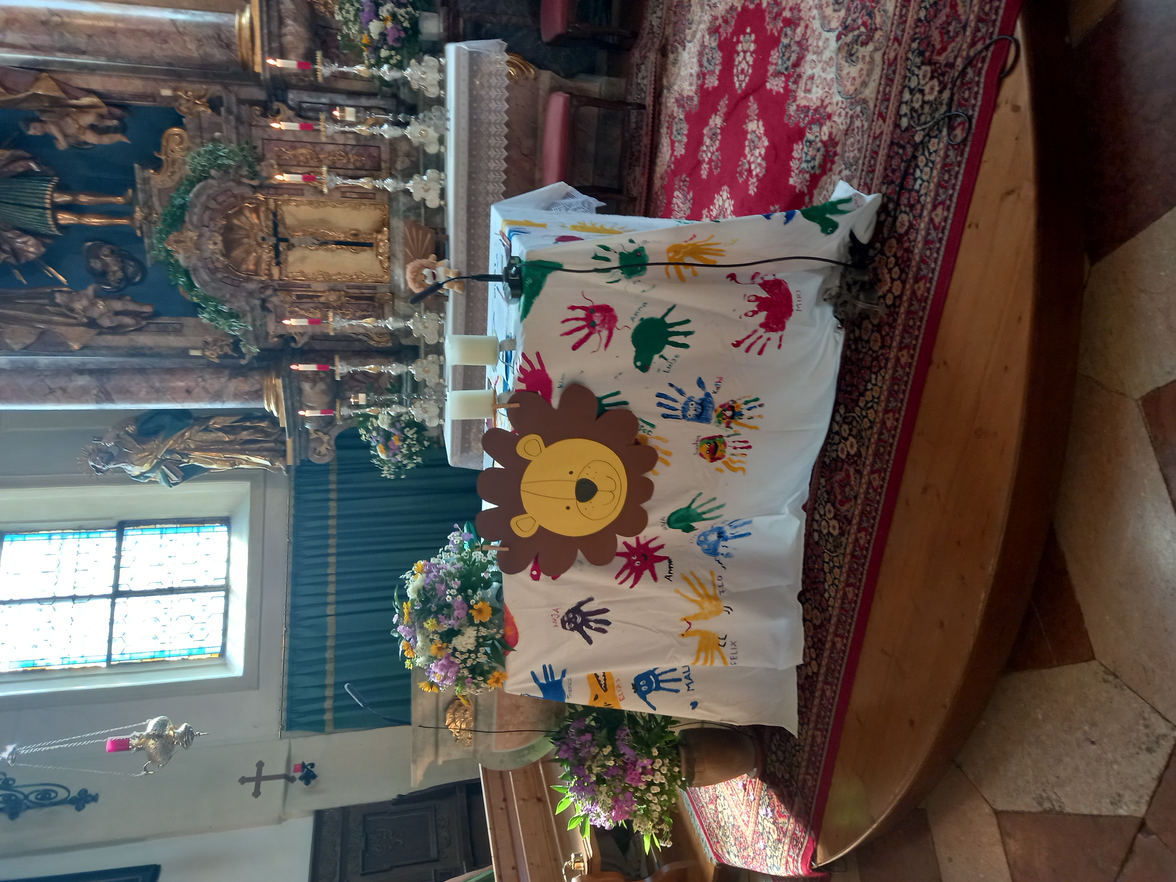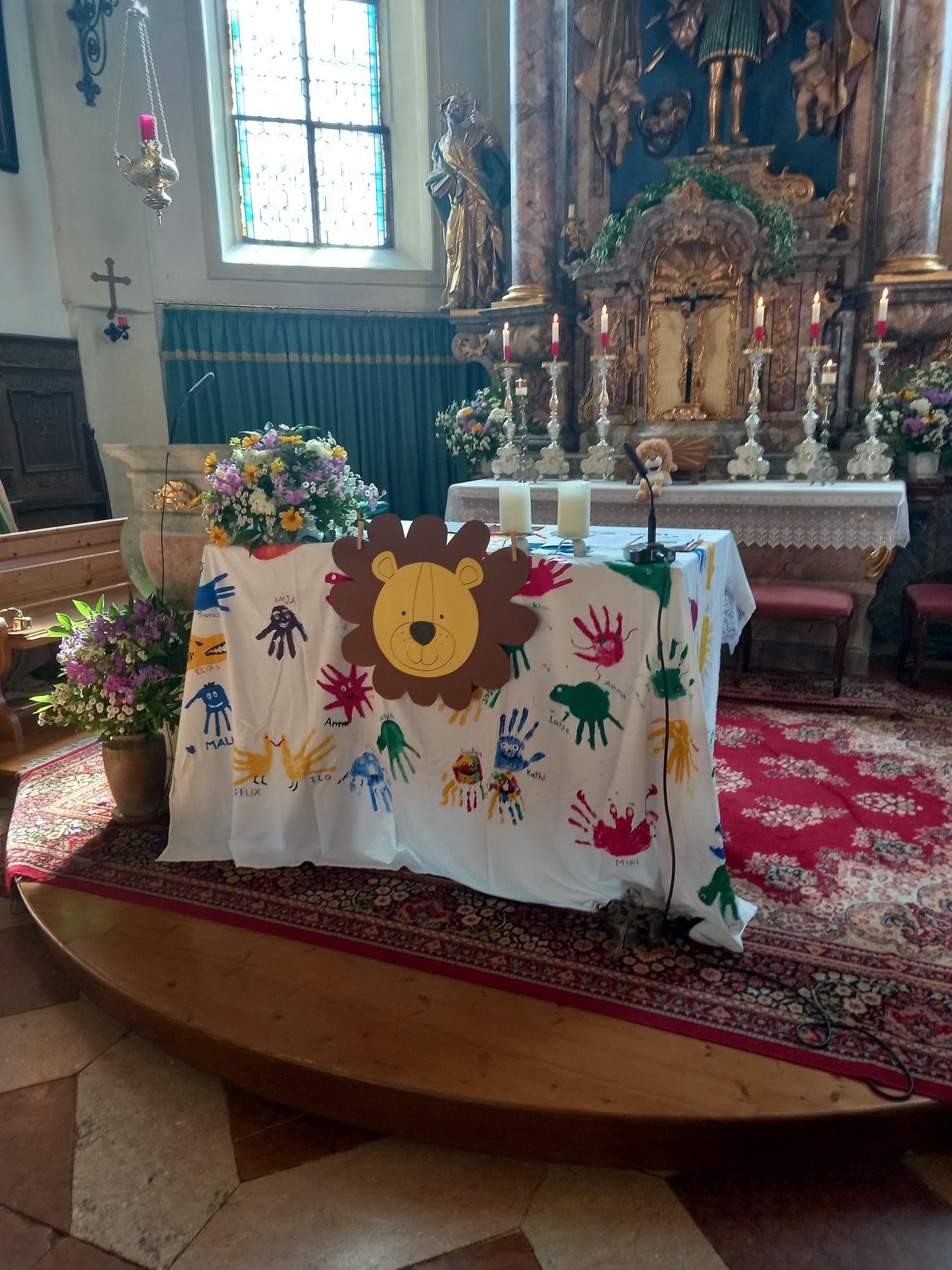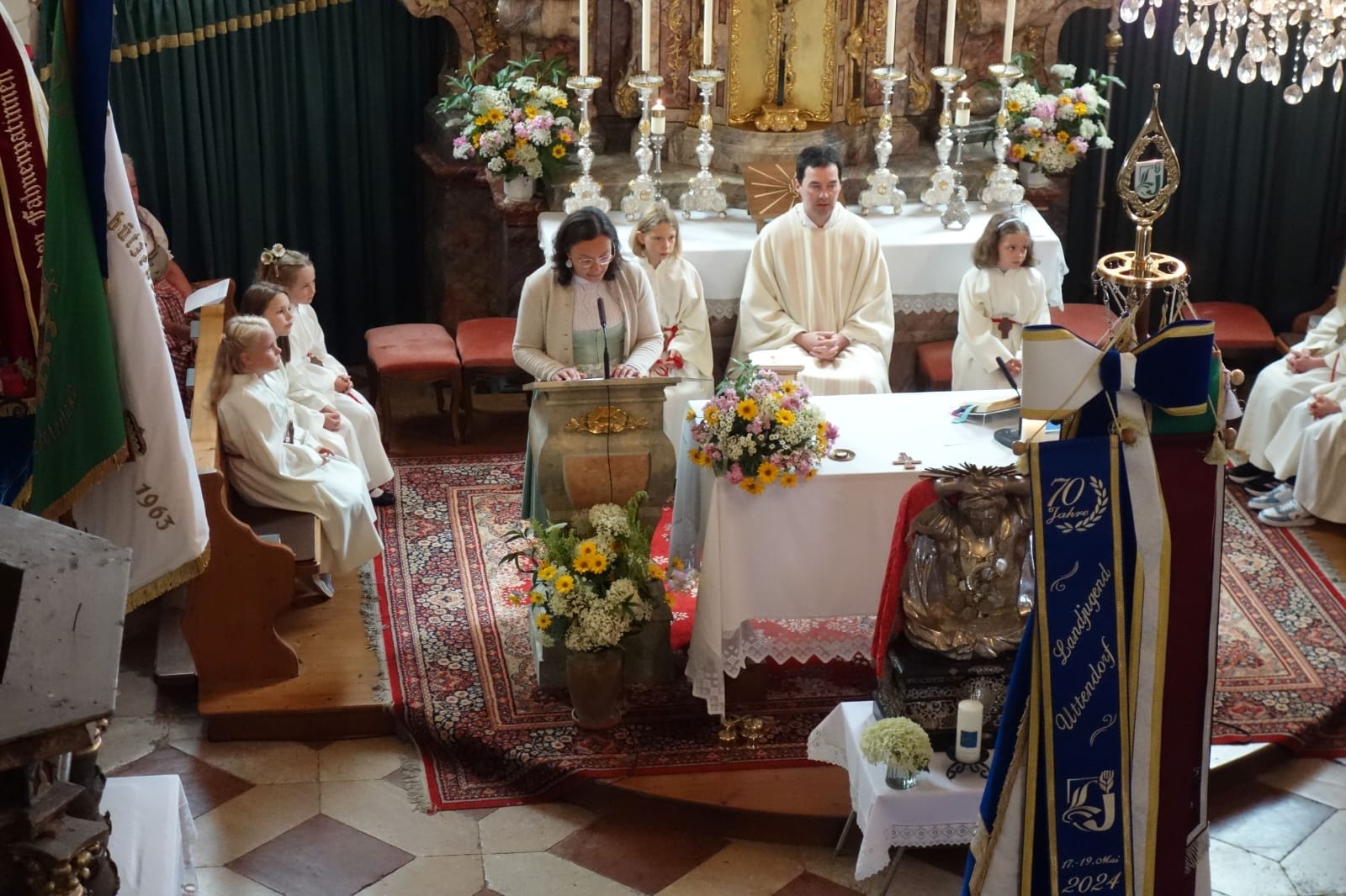 Pfarrer Lauterbacher als Zelebrant begleitet uns sehr humorvoll durch dieses Fest. Besonders danken möchten wir der Musikkapelle, und den Ministrantinnen in ihren Erstkommunionkleidern