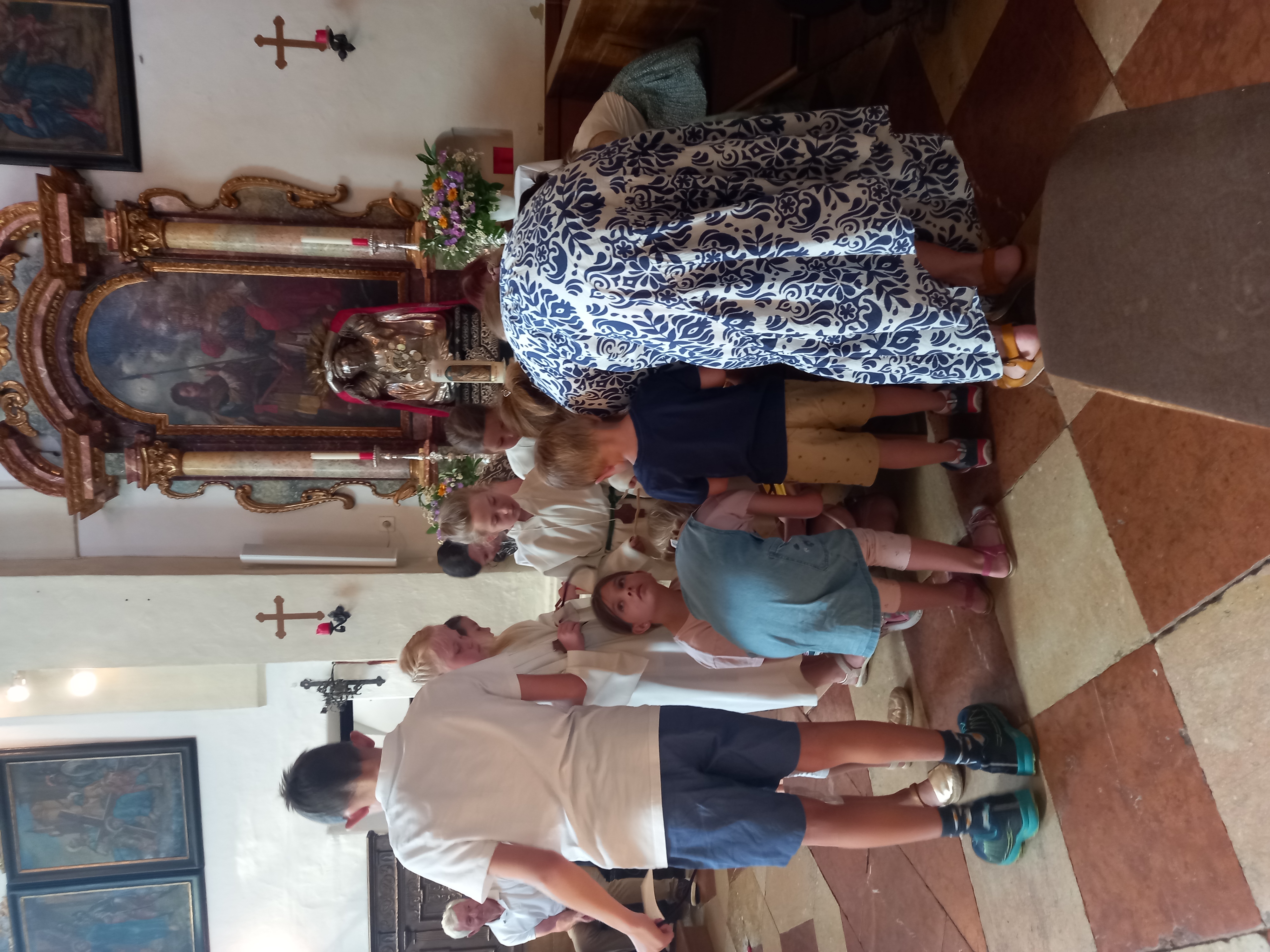 Am Gemeindeplatz startete unsere Prozession, wir gingen zur Dikl-Kapelle, zum Pfarrhof und dann zum Festgottesdienst in unsere wunderschön geschmückte Kirche.