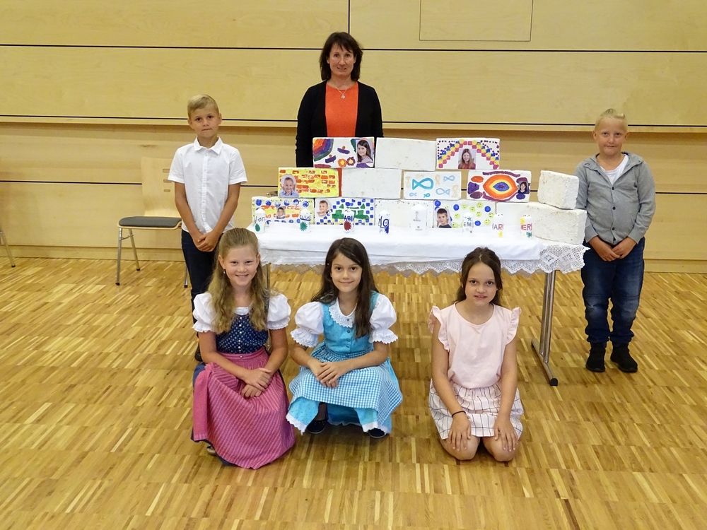 Beim Gottesdienst am 15. August 2020 haben sich fünf der sieben Kinder, die heuer zur Erstkommuion kommen, vorgestellt und den Gottesdienst musikalisch bereichert.