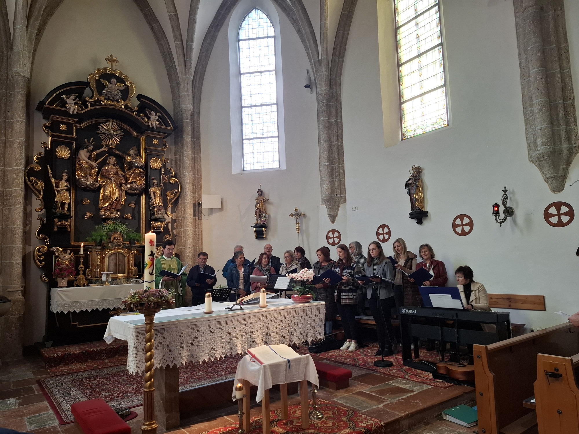 Stimmgewaltig und schwungvoll gestaltete sich der Gottesdienst in der Tarsdorfer Pfarrkirche am Sonntag. Das Gesangsensemble unter der Leitung von Margit Kneißl und mit Kaplan Franziskus als Solist, Gitarrist und Zelebrant untermalte die Messe musikalisch. Wir freuen uns aufs nächste Mal am Donnerstag, 13. November 2025 und bei der Rorate am Samstag, 13. Dezember!