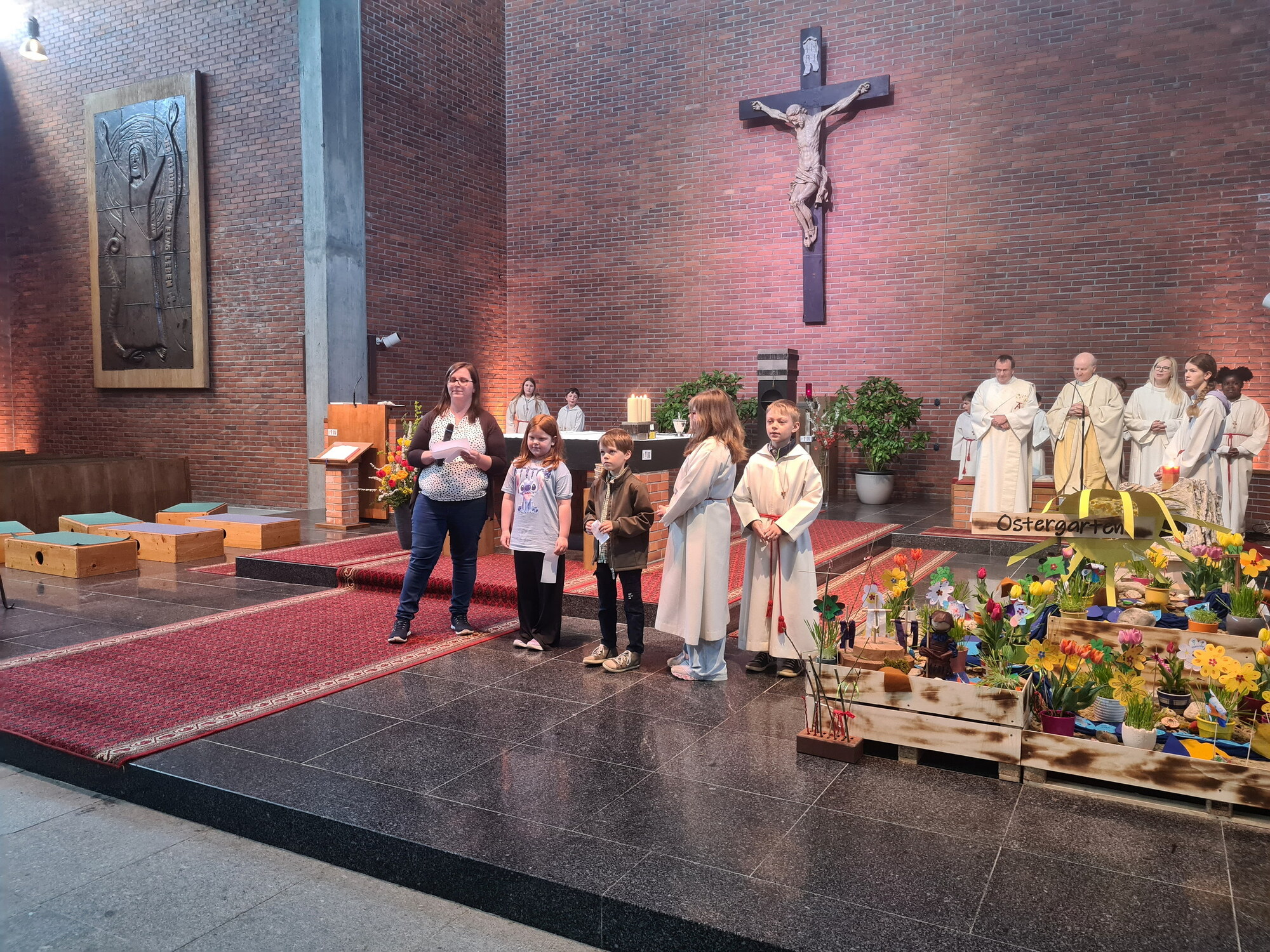 In der Fastenzeit 2025 haben wir heuer gemeinsam mit den Kindern einen Ostergarten gestaltet.